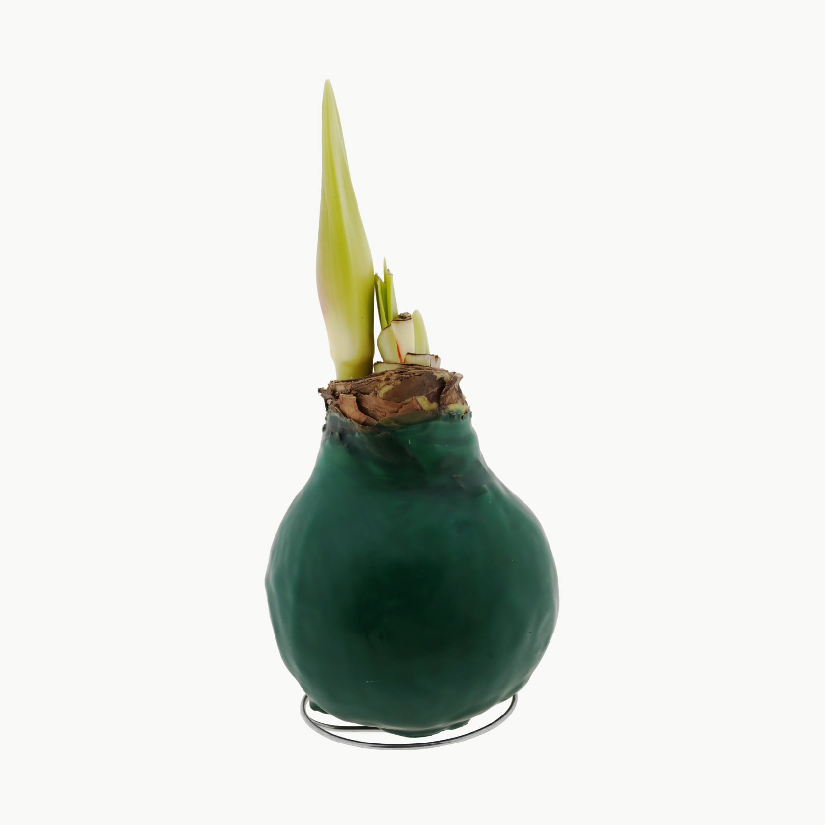 インテリアにもなる、かわいいワックス・アマリリス。カラフルなワックスでコーティングされた直径約9cmの球根です。水をあげなくても約1ヶ月ほどで茎が伸び、その後1週間程度で大きなお花が開きはじめます。インテリアとして部屋にお花を飾りたいんだけれど、世話ができる自信のない方でも大丈夫。水やりは必要なく、窓際に置くだけで育ち、花を咲かせます。