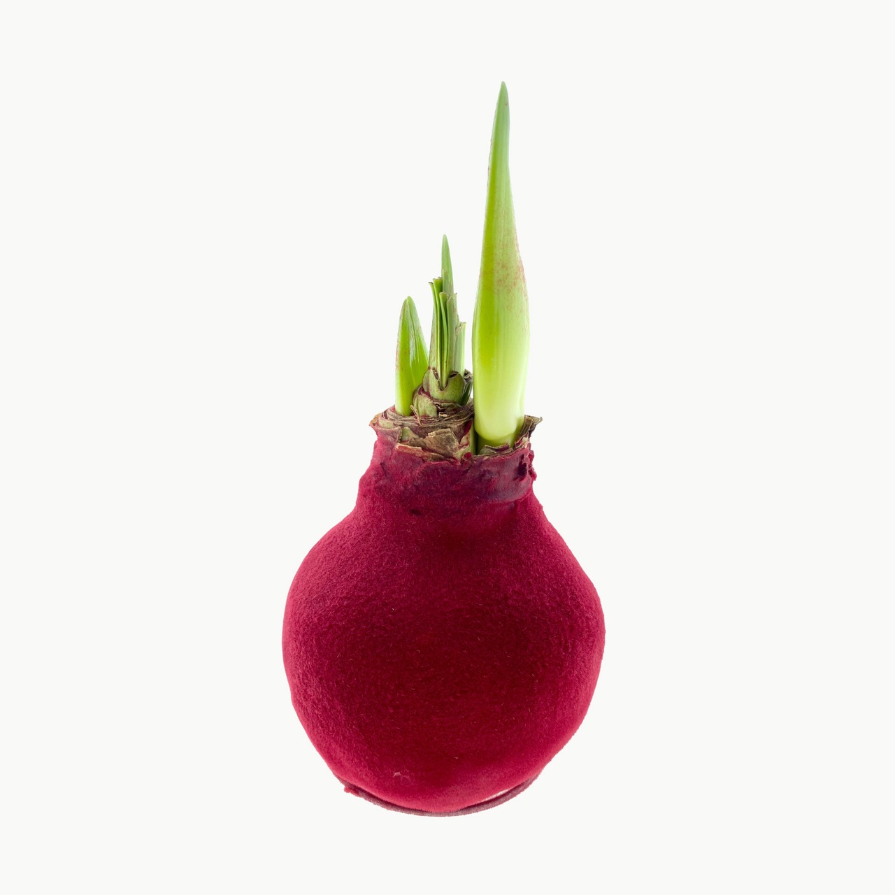 インテリアにもなる、かわいいワックス・アマリリス。カラフルなワックスでコーティングされた直径約9cmの球根です。水をあげなくても約1ヶ月ほどで茎が伸び、その後1週間程度で大きなお花が開きはじめます。インテリアとして部屋にお花を飾りたいんだけれど、世話ができる自信のない方でも大丈夫。水やりは必要なく、窓際に置くだけで育ち、花を咲かせます。